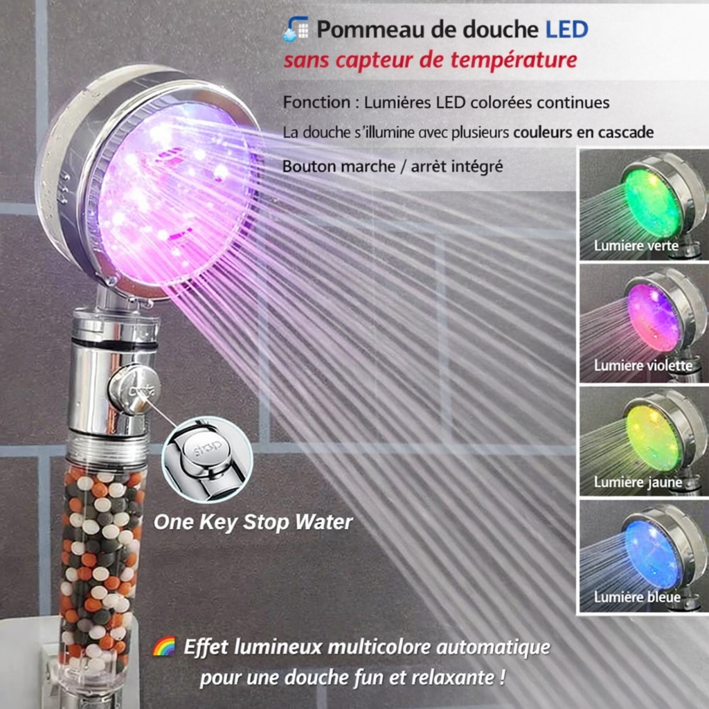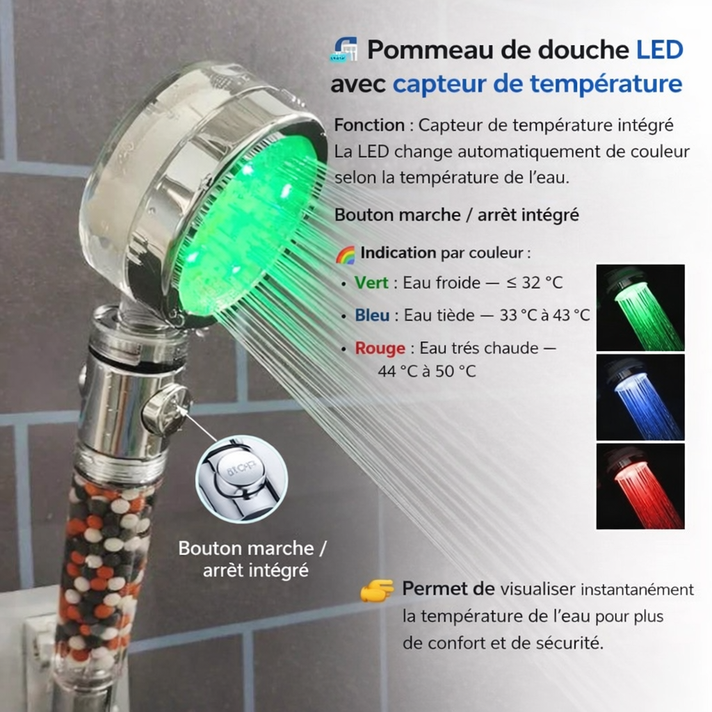 Pommeaux de douche LED 3 couleurs :